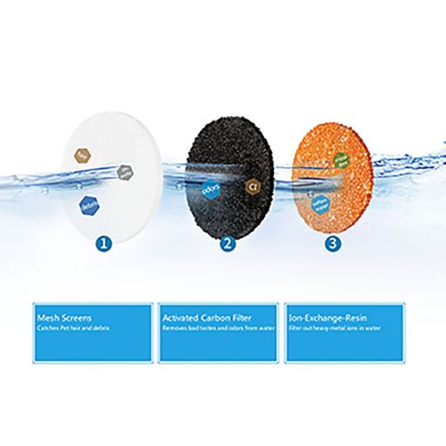 The 3 piece PETKIT Eversweet Carbon Replacement Filtration unit comes in a narrow rounded design and filters out and helps completely eliminate or screen any and all harmful chemicals and impurities found in contaminated or unfiltered water. Internally each filter features mesh screens with activated carbon and Ion-Exchange Resins. additionally also comes along with along with 4pcs of U-Shape Sponges for replacements. To only be used with the PETKIT Eversweet device.