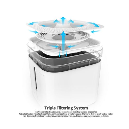The PETKIT EVERSWEET also reminds you when the filters need to be replaced. The 3-stage carbon filtration system filters out and helps completely eliminate or screen any and all harmful chemicals and impurities found in contaminated or unfiltered water. Internally each carbon filter features mesh screens with activated carbon and Ion-Exchange Resins.