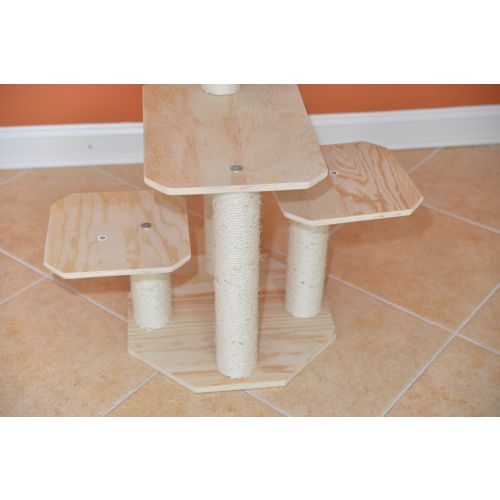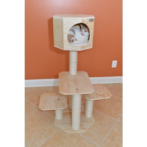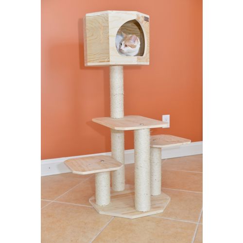 The Armarkat 46 Inch Premium Solid Wood Cat Tree is a solid tree perfect for multi cat households. It brings the open charm and adventure of the outdoors inside with the fresh fragrance of natural pine wood. It features 3 platforms as well as a cozy cat condo with pad where your cat can hide and watch out over everything. It is outfitted with 5 sisal wrapped scratching posts, which means your cat will have plenty of places to scratch and stretch and get out their energy.