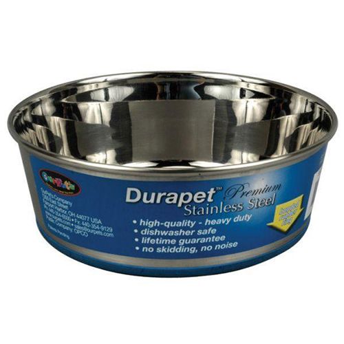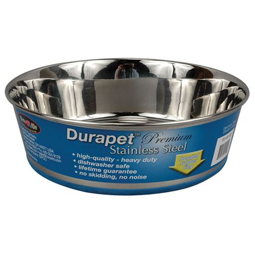 A tough rubber ring keeps the Durapet™ Stainless Steel Bowl firmly in place while your dog enjoys his meal. And it eliminates skidding and noise – so you can enjoy yours.