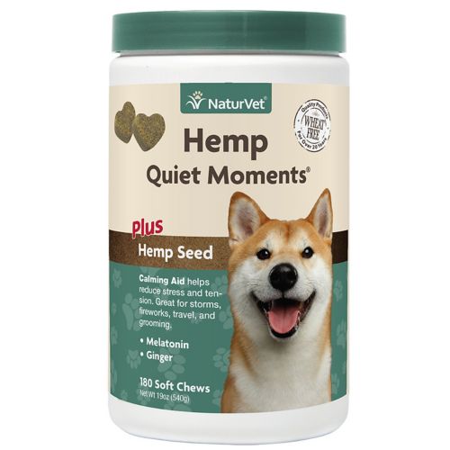 Dogs feel stressed or anxious for different reasons, just like we do. Whether your dog hides under the couch every 4th of July or whines and cries when left home alone, feeling calm and relaxed is extremely important to their overall health. With NaturVet Hemp Quiet Moments Calming Aid, you can help promote a calm and relaxed pooch. This unique blend of hemp seed oil, hemp seed powder, L-tryptophan, and Melatonin helps to reduce stress and tension. The added ginger supports sensitive stomachs, which is especially important when traveling. It's gentle enough to use everyday or can be used for specific stressful situations, such as adding a new pet into a home, noise-related situations such as fireworks or loud parties, trips to the veterinarian or groomer, separation anxiety, boarding, or following surgery to reduce mobility.