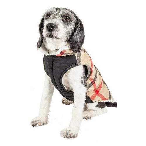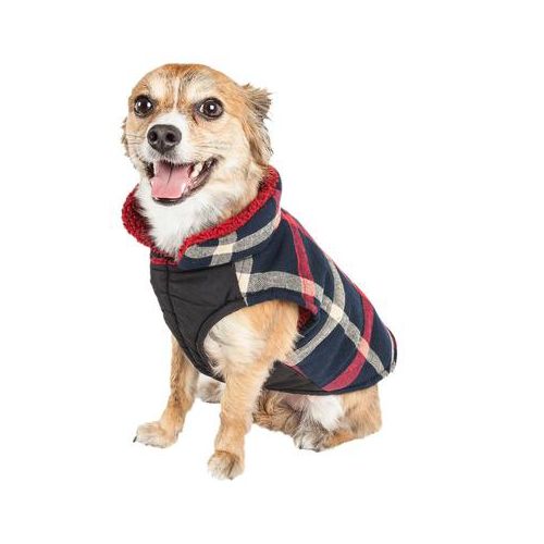 The Pet Life Allegiance Plaid Dog Coat is classy and functional. It features a Tattersall Plaided pattern composed of 100% cotton along the back. It extends into the collar with reversible ultra-soft sherpa that gently hugs the body. The inner is lined with high-grade plush polyfill for added warmth and comfortability. There is a tough-grade Velcro belly enclosure for convenient on and off access. A leash slit below the neck line makes leash attachment a breeze.
