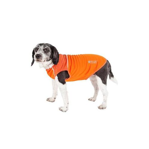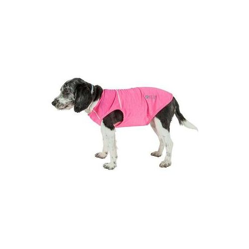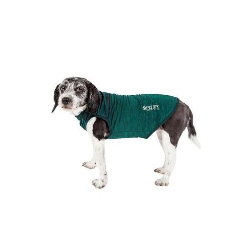 The Pet Life Active AeroPawlse Dog Shirt is a combination of style and function. It is an entire system comprised of ultra-lightweight, breathable and well ventilated specially engineered fabrics that fuse together to help enhance mobility and breathability. Features 4-Way stretch construction that moves better in every direction with a customized fit that is further than next to skin or fur without the squeeze and won't bunch up. The top layer features a specially formulated stretchy ultra-elastic and breathable micro-fiber and the bottom portion features specially formulated perforated and breathable panels that offer strategic ventilation. Both combined soft-touch flexible fabrics feature quick-drying properties that repel body moisture or sweat while offering anti-odor technology that assists with odor causing microbes. The AeroPawlse is also UV Protectant against the suns harmful rays and fitted perfectly to help assist in containment of shedded hairs. The design features dual reinforced stitching at every seam for longevity with a pull-over design for easy on and off access and reflective-taping for added night visibility.