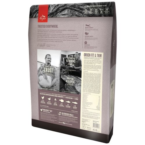 Cats benefit from a diet rich in protein to support lean muscle mass, with carbohydrates and calories limited for peak conditioning. ORIJEN Fit and Trim is formulated to be that diet. Made with 44% richly nourishing protein from lean meats, 16% carbohydrates, and a unique blend of soluble fiber, it nourishes cats according to their biological needs. Two thirds of ORIJEN's meats are fresh (refrigerated, no preservatives) or raw (flash-frozen, no preservatives), including the top ten ingredients. Free of rendered poultry meals, the other third of the dehydrated poultry is air-dried from fresh chicken and turkey, for a concentrated source of protein that cannot be supplied by fresh meats alone. Nutrient dense WholePrey™ ratios of fresh meats, organs, and cartilage plus fresh whole fish and fresh whole eggs provide a natural source of virtually every nutrient your cat needs. Infusions of gently freeze-dried liver enhance flavor and palatability naturally, making ORIJEN deliciously tasty, even for selective eaters.