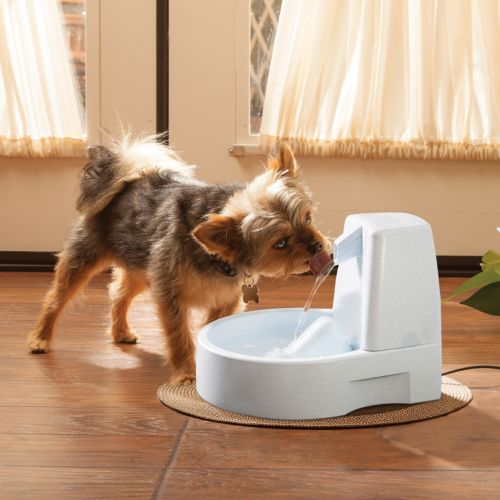Developed by a veterinarian, the Drinkwell Original Pet Fountain provides 50 oz. of fresh, filtered water to your pet. A patented free-falling stream of water entices your pet to drink more and continually aerates the water with healthful oxygen. A charcoal filter removes bad tastes and odors, giving your pet the best way to stay hydrated!