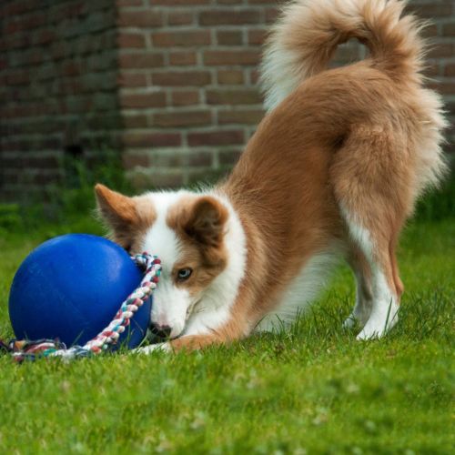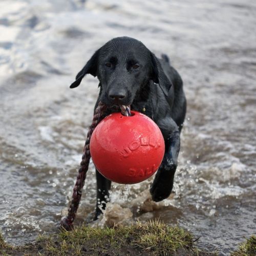 This ball-on-a-rope can be thrown, kicked, carried and tugged. The rope can be pulled back and forth through the flexible ball, but never out. The Romp-n-Roll™ can even float. It is made to be extra durable so the fun lasts and lasts. Made of non-toxic materials, the Romp-n-Roll™ is safe for everyone.