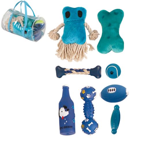 The Pet Life® 8-Piece Duffle Bag Dog Toy Set comes specifically designed for your little four-legged boy or girl. Packaged perfectly, these super-cool doggie duffle toy sets are the perfect gift with anyone with a new puppy addition