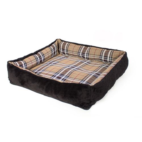 Kensington Deluxe Black Plaid Bolster Dog Bed