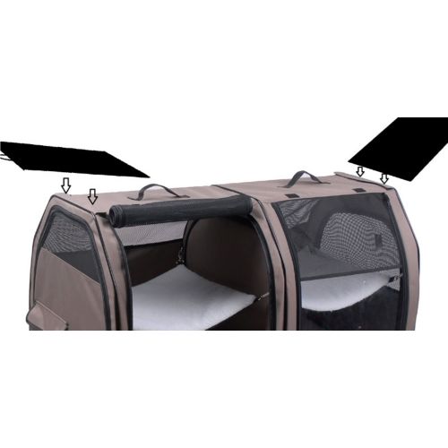 Use the double kennel as two separate compartments or one big space by unzipping the interior central divider