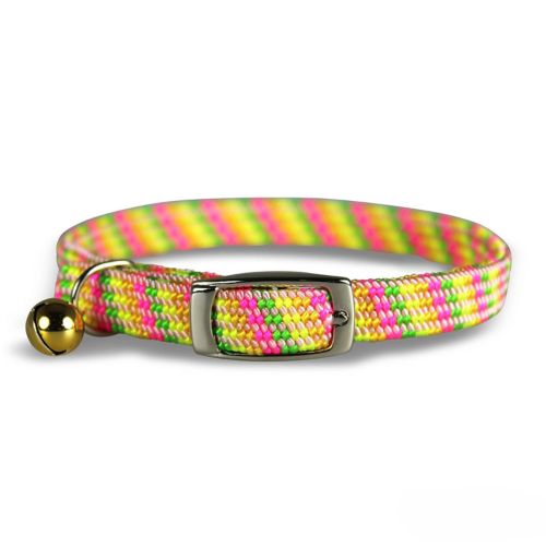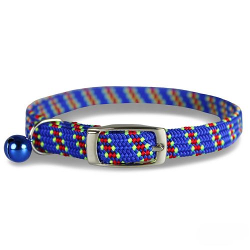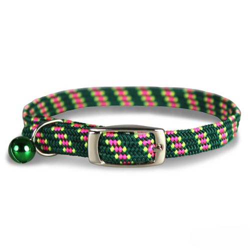 Keep your cat safe and comfortable with the Pattern Stretch Cat Collar. It has safety stretch abilities, which means the entire collar stretches from buckle to tip. It provides unlimited adjustment – simply buckle anywhere through the soft webbing. The nickel D ring and buckle are tough and will stand up to extended wear. A fun bell helps your cat subtly announce its whereabouts.