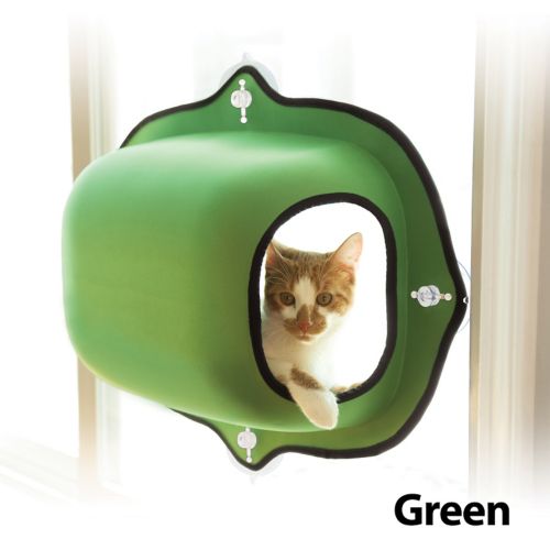 The ingenious K&H EZ Mount Window Bed™ instantly turns any window into a kitty entertainment center! It attaches to virtually any window in seconds, utilizing the proven suction cup mounting system. Completely open at the top, this half pod design gives cats easy access to climb in and out. The EZ Mount Window Bed includes the Amazin’ Kitty Pad. Soft, warm, cushy, and made from 100% polyester, it attracts kitties like bears to honey, and helps trap kitty dander and hair like nothing else.