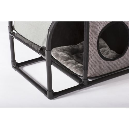 Covered hideaways and plush mat are ideal for lounging, sleeping, or hiding
