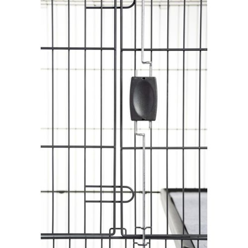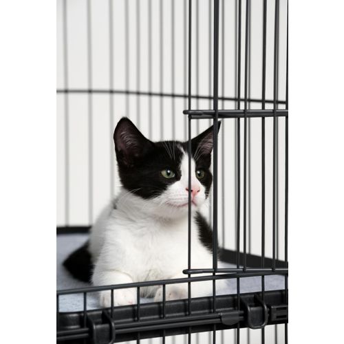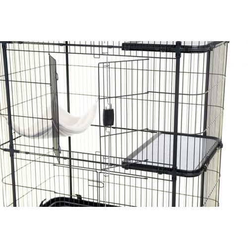 The Prevue Premium 4 Level Cat Home is an extra-large home designed for several cats or kittens. This lightweight, yet sturdy cage is made of rust-resistant aluminum. There are no pinch points or gaps, making it a paw-friendly design. Two extra-large lock-in platforms provide spots for your cats to perch and check out their territory. Removable felt covers make clean up easy. It also has two extra-large hammocks, which provide cozy spots to rest. The extra-large double doors make getting cats in and out very easy. Easy rolling casters with locks make moving it, or keeping it in place, a snap.