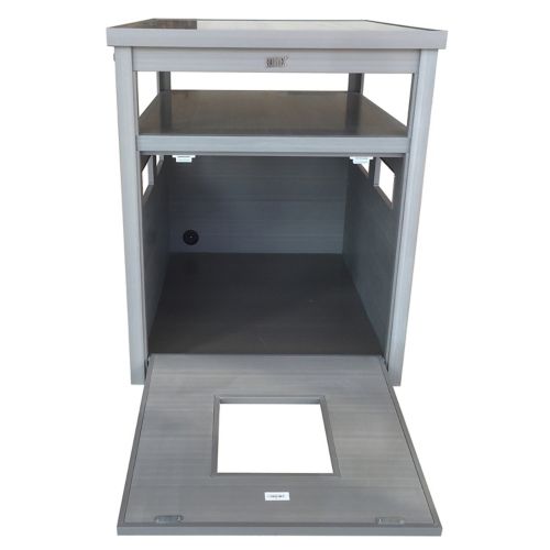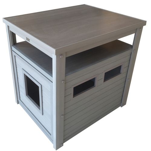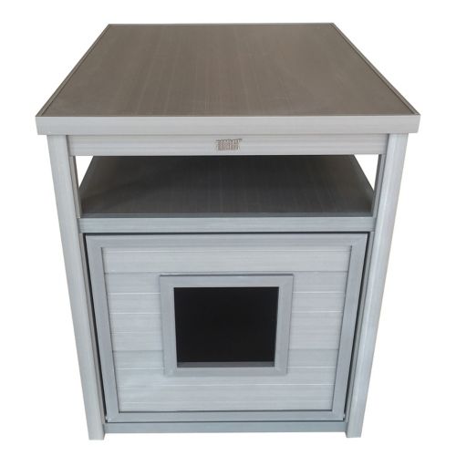 The New Age Pet ecoFLEX Grey Litter Loo is a stylish and sensible way to camouflage your cat's unsightly litter box. It is designed with eco-friendly ecoFLEX, a non-toxic recycled plastic-wood polymer composite material that won't warp, crack, or split. It features a fold down front door for easy cleaning and side vents for proper ventilation. This stylish litter box cover comes in a gray color that looks great in any home decor. Purchase two and use as end tables, one as a litter box cover and one as an enclosed pet bed.