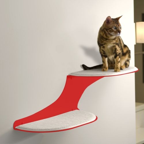 On the Refined Feline Cat Clouds Red Cat Shelf, you cat will appear to floating on clouds along your wall space. Let them lounge on super-strong metal platforms with soft comfortable pads covered in faux sheepskin fabric. The pads' magnetic bottom permits easy replacement if worn. It frees up floor space while giving your cats a place to climb and perch.