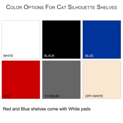Show off your love of cats while giving them a large comfy place to rest off the floor. The Cat Silhouette Gaze Cat Shelves™ are laser-cut from high-grade steel, powder-coated, and offered in a varieties of colors. The platform has a thick and comfortable plush pad and attaches to the metal with its magnetic backing. The Cat Silhouette Gaze Cat Shelves™ will showcase the elegance of your cat.