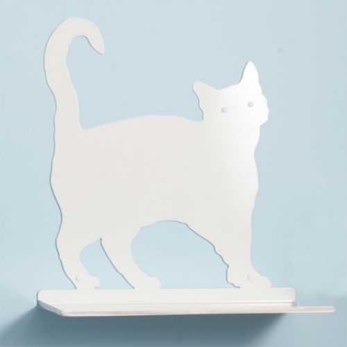 Show off your love of cats while giving them a large comfy place to rest off the floor. The Cat Silhouette Prance Cat Shelves™ are laser-cut from high-grade steel, powder-coated, and offered in a varieties of colors. The platform has a thick and comfortable plush pad and attaches to the metal with its magnetic backing.