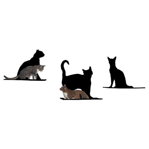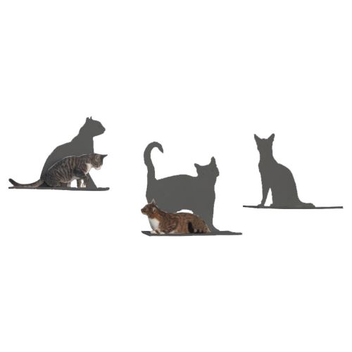 The Refined Feline Cat Silhouette Shelves™ 3-Piece Set offers your cat(s) three Cat Silhouette Shelves™ to gaze, pose, and perch themselves on. The shelves are laser-cut from high-grade steel, powder-coated, and offered in a varieties of colors. The platform has a thick and comfortable plush pad and attaches to the metal with its magnetic backing.