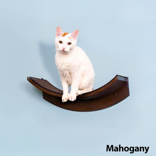 The Refined Feline Lotus Leaf Cat Shelf provides a perfect spot off the ground for your cat to curl into. The curved design will draw your feline in as an ideal place to perch, while you appreciate the aesthetic design along your wall. Your cat can feel secure in this sturdy shelf, made with solid wood and bent ply. A comfortable berber carpet adorns the top of the shelf which can be replaced if worn.