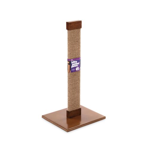 The Kitty Power Paws Tall Flat Cat Scratching Post provides your cat with a dedicated place for scratching and stretching, alleviating destructive behavior to household objects. The height allows your cat to stretch and tone, getting healthy exercise while keeping nails groomed and paws strong. The durable jute wrapped post encourages scratching. The attractive finishes will blend well into any décor. Sturdy and easy to assemble, it will last for many years.