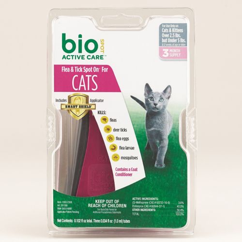Bio Spot Active Care™ Flea & Tick Spot On® for Cats kills fleas and deer ticks, and contains Insect Stop™ ingredient to kill the eggs and larvae.