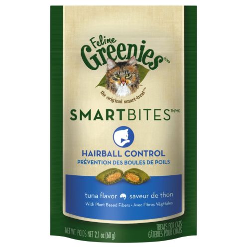 Treat and bond with your cat while providing essential health benefits! FELINE GREENIES™ SMARTBITES™ Hairball Control Cat Treats are not indulgent, empty calories. This delicious, dual-textured treat contains natural ingredients and FIBERBLEND™ Formula to help minimize hairball formation and promote healthy digestion.