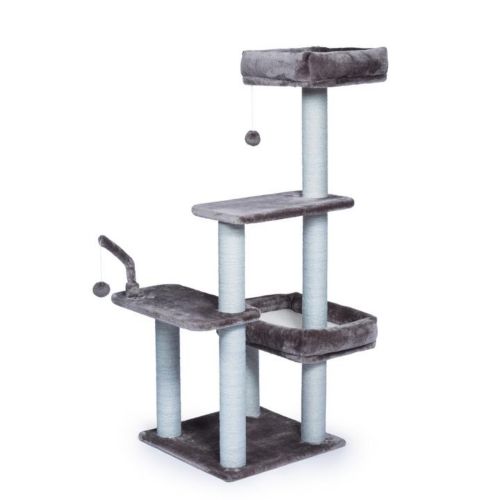 The Kitty Power Paws The Ritz is a multi-level activity center that your cat will love! Four lounging areas covered with soft, plush material provide comfortable spots for your cat to rest or hide. Durable jute rope scratching posts offer an appealing texture to cats, curbing inappropriate scratching behaviors. Two plush, dangling swat toys encourage your cat to play.