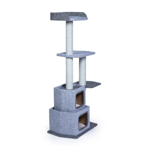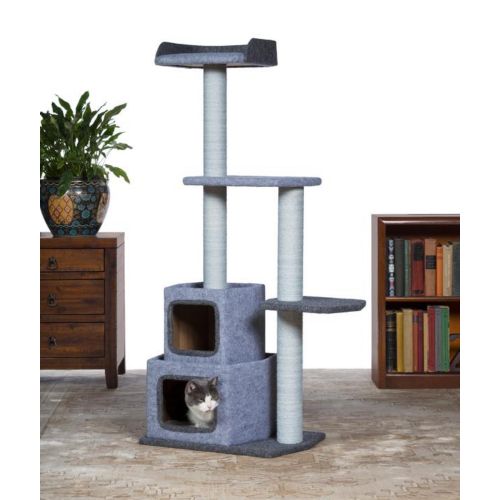 The Kitty Power Paws Sky Tower is a multi-level activity center that your cat will love! Five lounging areas covered with soft, plush material provide comfortable spots for your cat to rest or hide. Durable jute rope scratching posts offer an appealing texture to cats, curbing inappropriate scratching behaviors. At 4½ feet tall, this cat tree utilizes vertical space and a compact footprint to save space in your home.