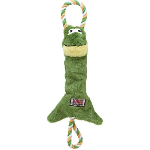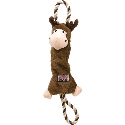 The Kong Tugger Knots are fun, interactive multi-purpose dog toys that your dogs will adore. These toys come with rope handles for tugging and plush bodies for shaking and snuggling. The ropes of the toy are looped together to absorb tugging stress, leaving the soft, plush toy intact even after the most strenuous tug sessions.