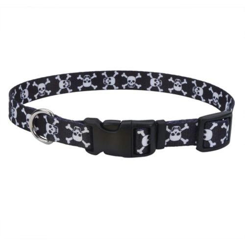 The Pet Attire Adjustable Collar is a great way to dress up your pet. Its soft, silky-smooth woven nylon material boasts comfort and long-lasting durability, while the vibrant, double-sided bones print brings out your dog's style. The adjustable collar has a high-impact plastic buckle, a steel D-ring, and a nylon quick-release fastener. Available in a variety of sizes to meet the needs of most dogs.