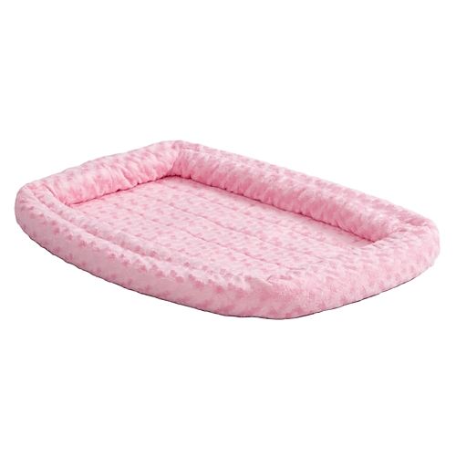 The unique, feature-filled, patent pending QuietTime® Double Bolster Beds are manufactured with the quality and care expected from MidWest. The Deluxe Double Bolster Bed features a cushioned poly-fiber base covered in luxurious faux fur. With a double stock bolster to provide extra deep cushion for support and comfort, these premium crate beds have stitched-in elastic corner straps to prevent sliding and bunching.