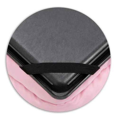 Elastic corner straps secure bed to crate pan to prevent sliding and bunching