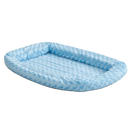The unique, feature-filled, patent pending QuietTime® Double Bolster Beds are manufactured with the quality and care expected from MidWest. The Deluxe Double Bolster Bed features a cushioned poly-fiber base covered in luxurious faux fur. With a double stock bolster to provide extra deep cushion for support and comfort, these premium crate beds have stitched-in elastic corner straps to prevent sliding and bunching.