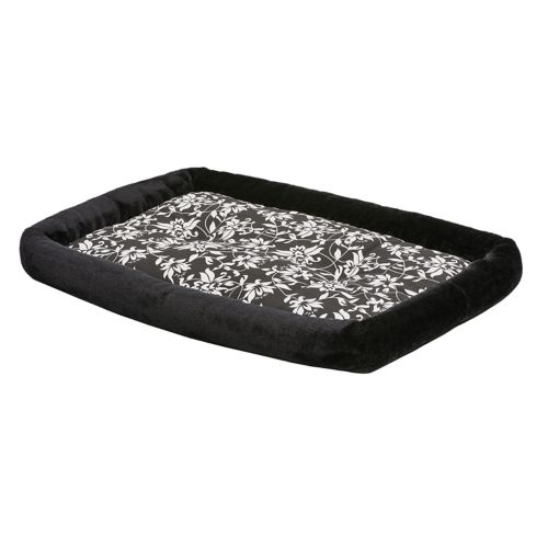 The Sofia Bed from Quiet Time® features a fun floral pattern with exquisitely soft black faux-fur bolsters. It is a great dog bed to use anywhere at home and it creates a cozy den when added to a dog crate.