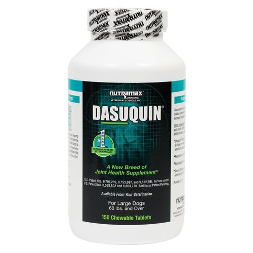 Dasuquin is a veterinarian-recommended joint health supplement that goes beyond standard glucosamine supplements. It combines NMX1000® ASU (avocado/soybean unsaponifiables) and decaffeinated tea with Glucosamine and sodium chondroitin sulfate to provide a most complete joint health solution. Dasuquin is a dual synergistic formula. Cell Culture research has shown that its specific glucosamine hydrochloride and low molecular weight chondroitin sulfate have demonstrated synergy in stimulating cartilage matrix production, while ASU also acts synergistically with glucosamine. The ASU is obtained from avocados and soybeans and is a potent ingredient demonstrated to help protect cartilage and support joint function. The tasty and easy-to-chew tablet will please even the most particular palate.