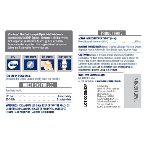 Pro-Sense Plus Hip & Joint Solutions Tablets are formulated with NEM® Eggshell Membrane, an innovative ingredient that supports healthy hips and joints and is an option for everyday use. These fast-strength tablets are for small and medium dogs, and show results in as little as 7-10 days.