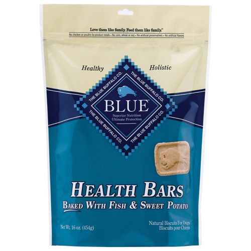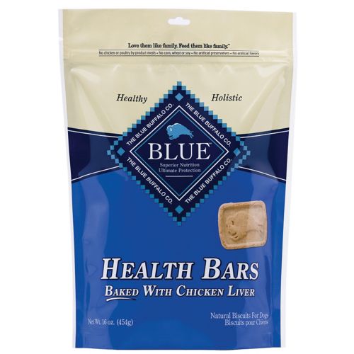 Blue Buffalo® BLUE® Health Bar Dog Treats are all-natural biscuits that include wholesome whole grains and vegetables, and are fortified with Omega 3 fatty acids. Natural BLUE® Health Bars feature delectable flavors and crunchy textures your dog will love munching away at – while they’re helping to clean teeth, too.