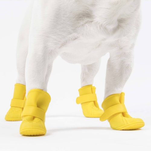 The Canada Pooch Yellow Wellies help protect your dog's paws from rain and mud. They have a waterproof shell to keep paws dry and clean. They are flexible and comfortable so your dog won't mind them being on. The easy-on design makes it a snap to get them on even the most finicky dog's foot and they are easily secured on with a strap. Wellies are great for all seasons and are ideal to have on hand for any messy situation.