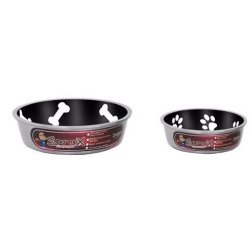 Super Max bowls by Indipets are constructed from extra-heavy-duty sand-casted aluminum for durability, in contrast with beautiful ceramic-like interiors decorated with simple designs and vibrant colors.