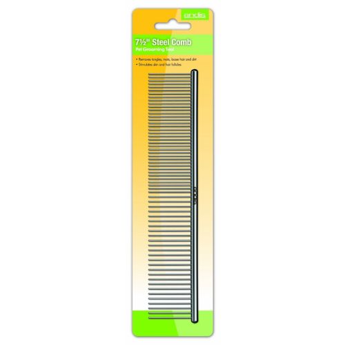 This sturdy comb removes tangles, mats, loose hair, and dirt, all while stimulating skin and hair follicles. The comb is dual-sided with coarse and fine teeth and is an essential tool for finishing and fluffing coats. Not only is it great for all sizes of dogs, but cats too!