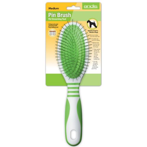 This brush not only removes tangles, dirt, and loose hair, but also helps spread natural oils throughout the coat, promoting growth and keeping hair looking healthy. The anti-slip, easy-grip handle helps make grooming safe, comfortable, and easier. This brush also features a unique pin pad that will help prevent brush teeth from falling out over extended use.