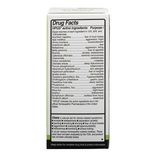 This all-natural Dog Remedy for Anxiety and Stress can relieve a number of stress-related symptoms including anxiety, restlessness, separation anxiety, panting, drooling, whining, fear of loud noises, aggression, cowering, hyperexcitability, listlessness, trembling, and stress-licking. You simply add the proper dosage to your pet's water bowl, and since it's taste-free, your pet won't notice a difference!