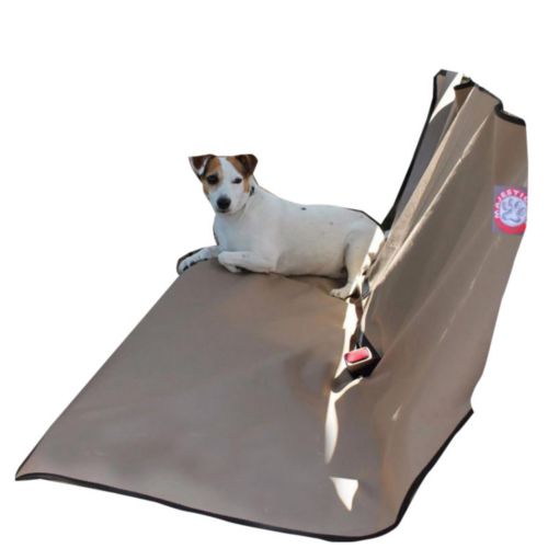 The Majestic Universal Waterproof Back Seat Cover is an economic yet durable way to protect your dog and yourself while driving. Its’ dual protection provides both a barrier between the front and backseat; preventing your dog from jumping into the front seat as well as protecting your seats from fur, dander, and dirt. Constructed from 300/600 waterproof denier ballistic nylon, this cover features four adjustable nylon straps that easily attach to the front and rear headrest, making for easy installation. The waterproof liner is wipes clean and is 100% machine washable.