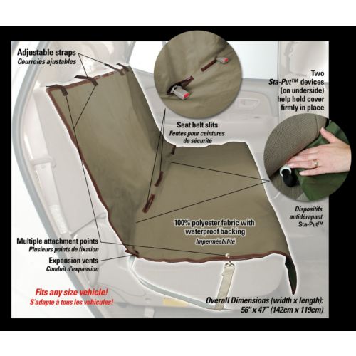 Featuring attractive styling with classic covers and a barrier protecting the seat from dirt and spills, the Solvit™ Waterproof Sta-Put™ Bench Pet Seat Cover is constructed from heavy gauge polyester fabric and is fitted with multiple attachments, adjustable straps and elastic straps beneath the cover that keep it firmly in place.