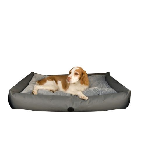 To provide your pet their own neat little place in your own vehicle, the KH Mfg SUV Travel Bed furnishes 2 SUV beds. The smaller size suffices in a small to midsized SUV, while the larger fits great in a mid to full size SUV. The gray and tan colors compliment almost all interiors. The outer bolster is made up of 600 denier nylon with a water-resistant backing. The detachable cushion is made out of supple and comfortable micro fleece and it is adorned with tufting to keep the premium polyfil in place. A non-slip fabric present at the bottom of the bed, allows your pet dog to cling in for a longer period of time. This bed comes along a matching car seat cover.