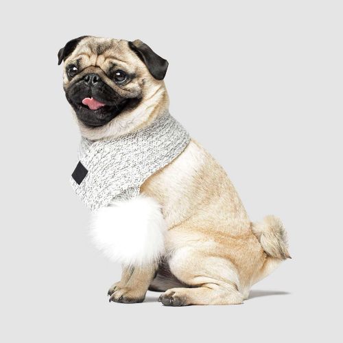 Add a stylish touch to every outfit with the Canada Pooch Apres Ski Dog Scarf. It features a textured marled fabric and a trendy pom pom for a chic look. The 360 degrees stretch and easy on pull over design makes it perfect for any dog. A branded faux leather patch shows your dog's friends that he or she is part of the Canada Pooch pack.