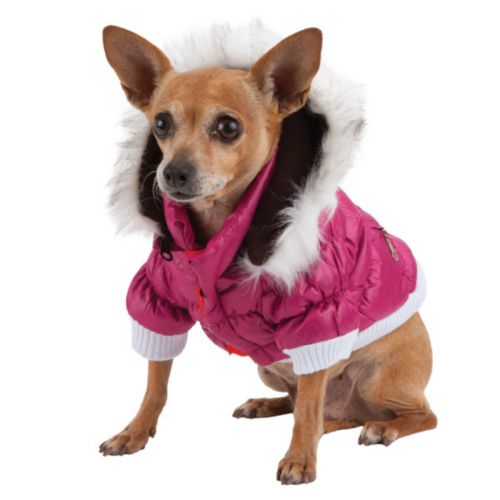 The Pet Life Metallic Pink Parka Dog Coat is designed to keep your dog looking good while keeping her warm during the coldest weather. This fashionable dog parka features '3M' Thinsulate insulation technology that helps keep your dog's body temperature regulated. In addition, the Metallic Pink Dog Parka includes matching tone-on-tone inner fleece fabric, a leash-slit holder, removable contrasting, faux fur hood, zippered usable pockets, and Velcro belly closure.