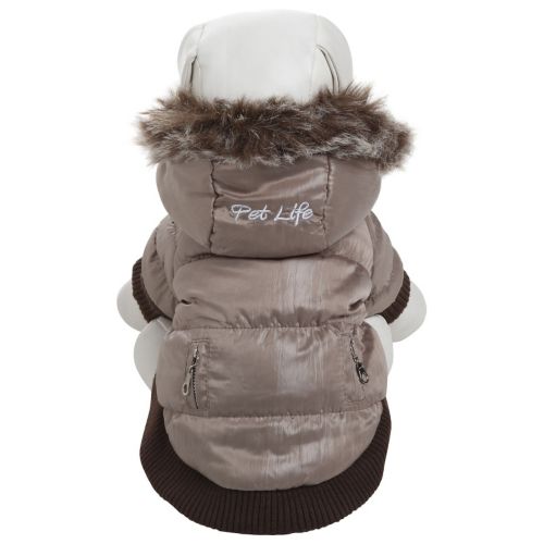 Designed to keep your dog warm and while looking cool, the fashion trendy Metallic Fashion Parka is a polyester puff parka lined with fleece, complete with 3M Thinsulate insulation between the linings that will protect your pup in wintery weather. In addition, the Metallic Fashion Parka includes matching tone-on-tone inner fleece fabric, leash-slit holder, faux fur removable zippered hood, “usable” back pockets, and Velcro belly closure.