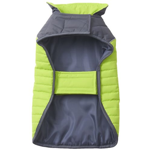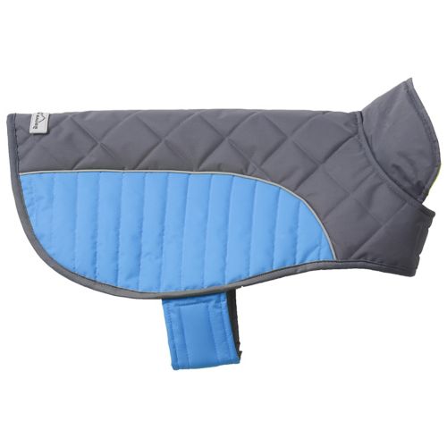 The Petrageous Portage Quilted Two-Tone Dog Jacket is style and function all in one. The medium weight coat will keep your dog warm and dry. Adjustable Velcro straps at the neck and belly make it easy to get on and off and ensure a custom fit, while the contrasting colors will help your dog stand out. A leash hole makes it easy to attach the leash to the collar.