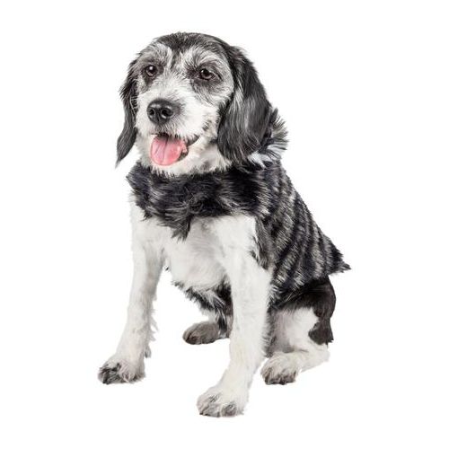 Your dog will be the most stylish on the block with the Pet Life Luxe Chauffurry Mink Fur Dog Coat. It features an extravagant dark gray toned zebra pattern with a richer darker shade of coloration that is loud yet subtle. It has a lavish faux fur hood that blends together effortlessly. The body feels ultra soft and silky. There is a tough-grade across-the-body Velcro belly enclosure for convenient on and off access. A leash slit below the neck line makes leash attachment a breeze.